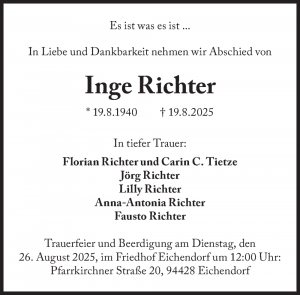 Edgar Reitz teilte uns in einer Email mit, das Inge Richter verstorben ist. Sie war...
